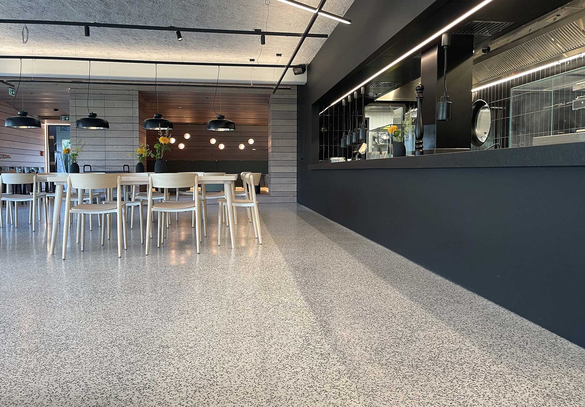 Der VIA Terrazzo ist ein fugenloser, klassischer und natürlicher Bodenbelag aus Sand, Kalk und Gesteinskorn und ist zu 100% recyclingfähig. Gerade im Neubaubereich gibt es einen architektonischen Trend zu fugenlosen Böden. VIA hat das traditionelle Verfahren für die Ansprüche moderner Bau- und Sanierungsmaßnahmen optimiert. Die Verarbeitung und das Finish des Bodens ist leicht zu handhaben. Das Ergebnis ist ein fugenloser, langlebiger Terrazzoboden. Individuelle Mischungen sind möglich.