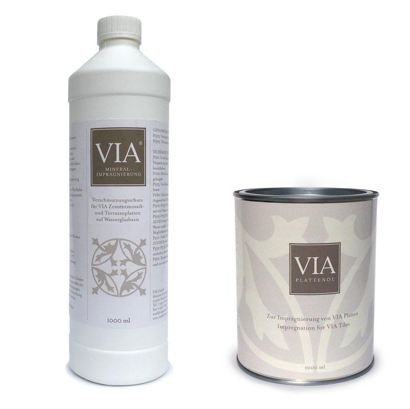 - Die Imprägnierung der Platten erfolgt nach dem Verfugen. Sie können die Imprägnierung entweder mit dem VIA Plattenöl oder mit der VIA Mineralimprägnierung vornehmen.