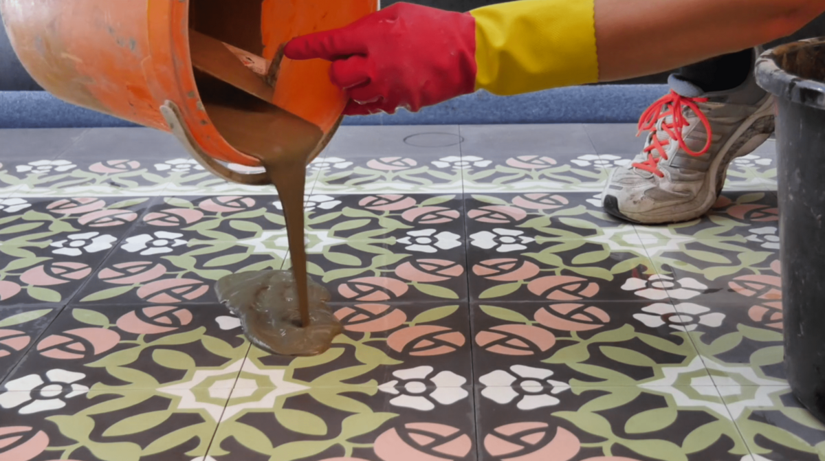 Zementmosaik- und Terrazzoplatten werden traditionell mit sehr schmaler Fuge verlegt. Wir zeigen Ihnen, wie das geht.